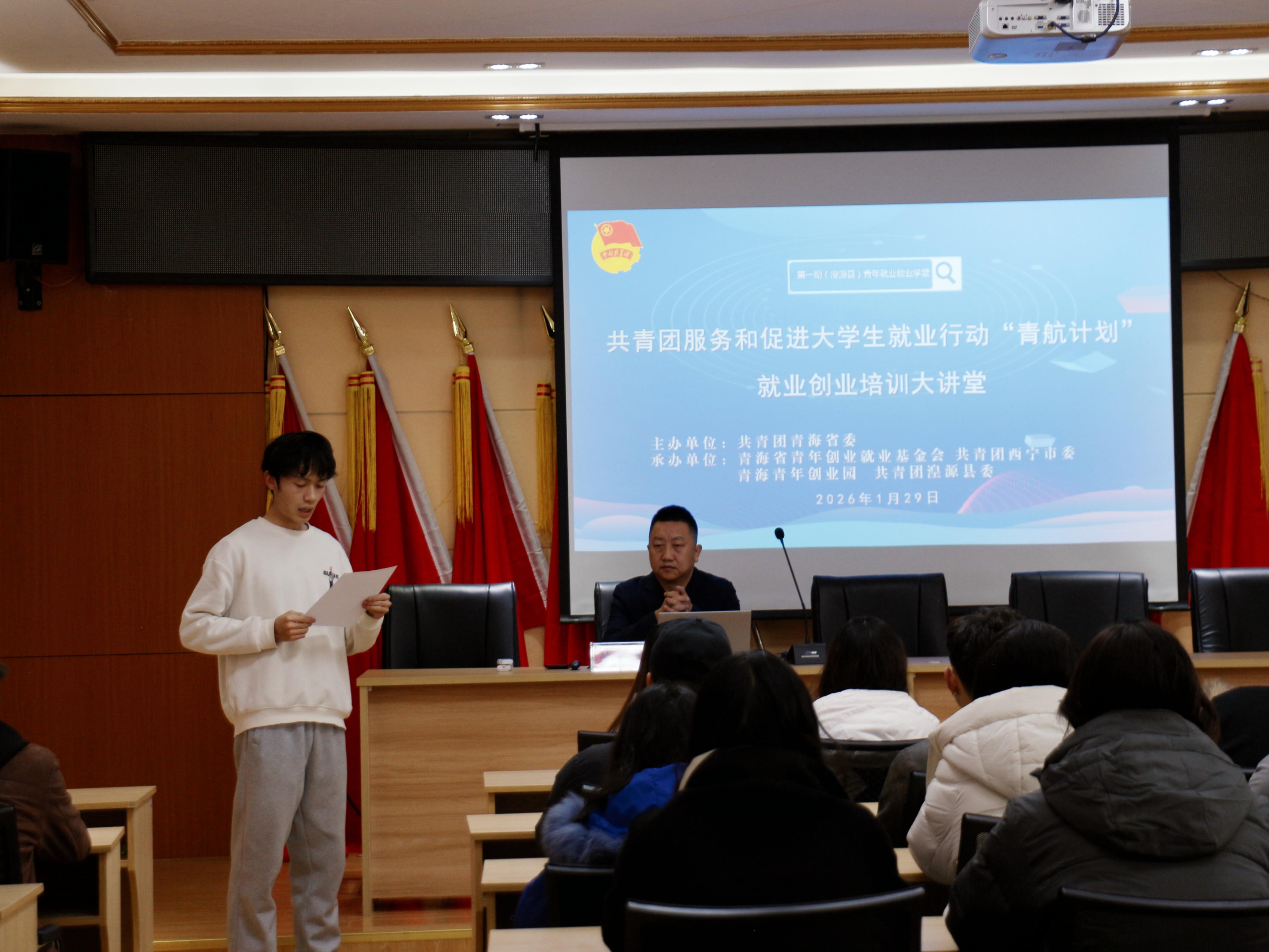 為深入貫徹落實共青團服務和促進大學生創(chuàng)業(yè)就業(yè)行動部署要求,切實提升湟源縣大學生及未就業(yè)青年的就業(yè)創(chuàng)業(yè)能力,破解大學生就業(yè)迷茫、創(chuàng)業(yè)技能不足等難題,1月29日,由共青團青海省委主辦,青海省青年創(chuàng)業(yè)就業(yè)基金會、青海青年創(chuàng)業(yè)園、共青團西寧市委、共青團湟源縣委承辦的“2026年青海共青團服務青年就業(yè)職業(yè)能力提升培訓(第一期)湟源專場”成功舉辦